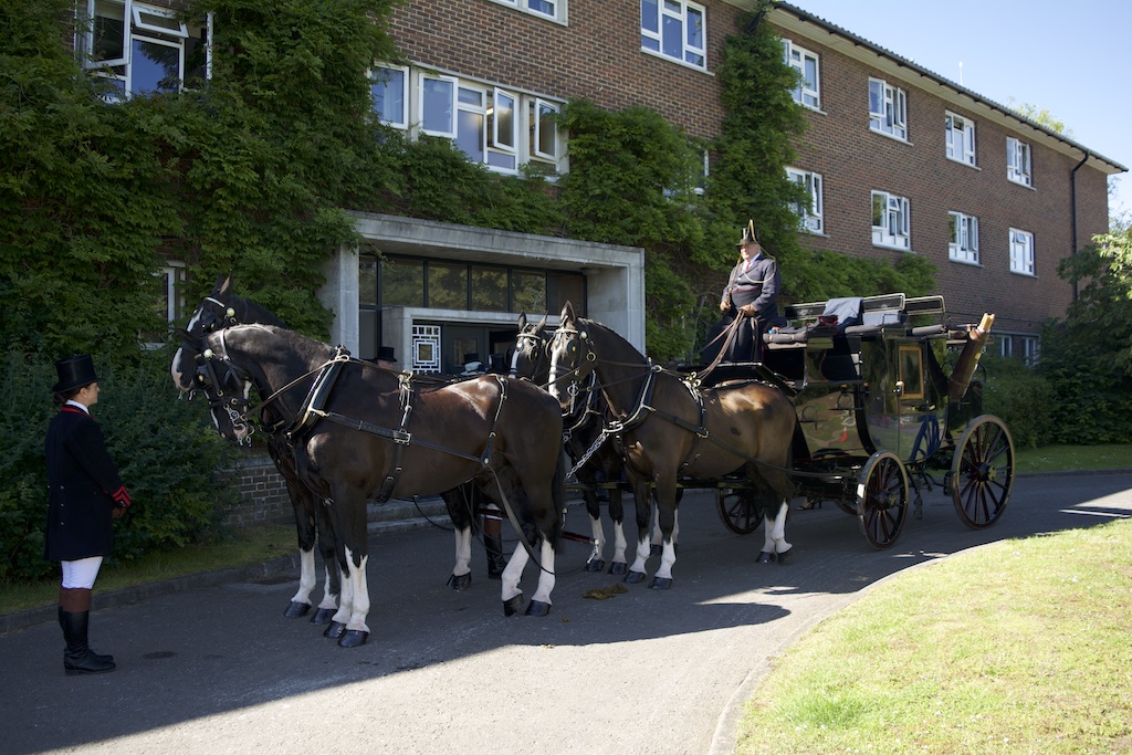 Lessons had been learned from the South African wars and by 1914 veterinary care was now efficient and effective. Divisional transport assets each had a veterinary section overseeing animal health and welfare, capable of treating minor injuries and equipped with an equine ambulance. Any horse needing more advanced care could be evacuated by this means to a Veterinary hospital behind the lines. The 1917 Mk II Lingfield Pattern Horse Ambulance in the RLC collection was in service with the Royal Army Veterinary Corps in Aldershot Garrison until the 1970s. This is a reversible vehicle – the shafts can be taken out and inserted the other end, allowing for ease of loading. The strange arch over the top is actually the axle and provides a sturdy support to support an injured horse when necessary.